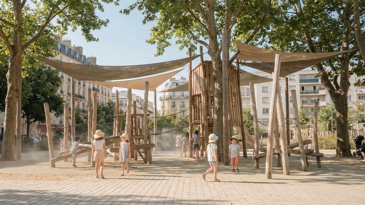Les épisodes de chaleur extrême transforment trop d'aires de jeux françaises en véritables fours, au point que les enfants ne peuvent plus y mettre un pied l'après‑midi. Pensons enfin ces espaces comme des lieux de confort climatique, en misant sur le bois de robinier et une conception moins naïve des usages d'été.