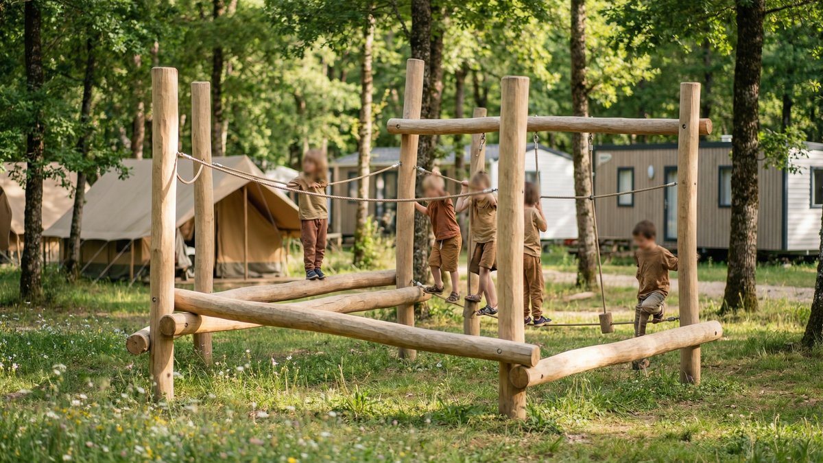L'objectif n'est pas de devenir le Disneyland du camping, mais d'avoir un espace structuré, cohérent, qui fonctionne sans drame. Une aire de jeux robuste en bois de robinier, bien implantée, avec quelques petits jeux ciblés et des jeux sur ressorts choisis intelligemment, peut travailler pour vous : elle occupe les enfants, apaise les parents, nourrit les avis positifs.